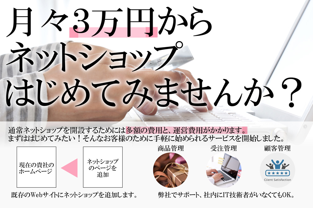 導入にあたり費用と時間がかかるECサイト(ネットショップ)。このECサイトを月額で導入できるようにしました。また、既存の貴社のWebサイトを活用することで、初期コストも大幅に抑えました。